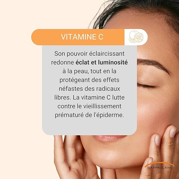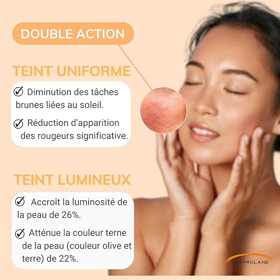 - PUISSANT ANTIOXYDANT POUR UN TEINT LUMINEUX : Oxyprolane Eclat du Teint, grâce à l'extrait breveté SkinaAx2, a montré son efficacité pour atténuer la couleur terne de la peau (couleur olive et terre) de 22%. Il accroît la luminosité́ de 26% et améliore la fermeté de la peau de 68%. Le teint est plus lumineux, plus frais, plus uniforme.