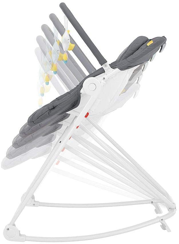 Le dossier du transat s'ajoute sur deux positions, il dispose de d'une assise molletonnée et morphologique amovible, l'arche s'ajoute pour toujours être accessible pour votre enfant. Elle est composée de deux jouets et peut se détacher si vous le souhaitez